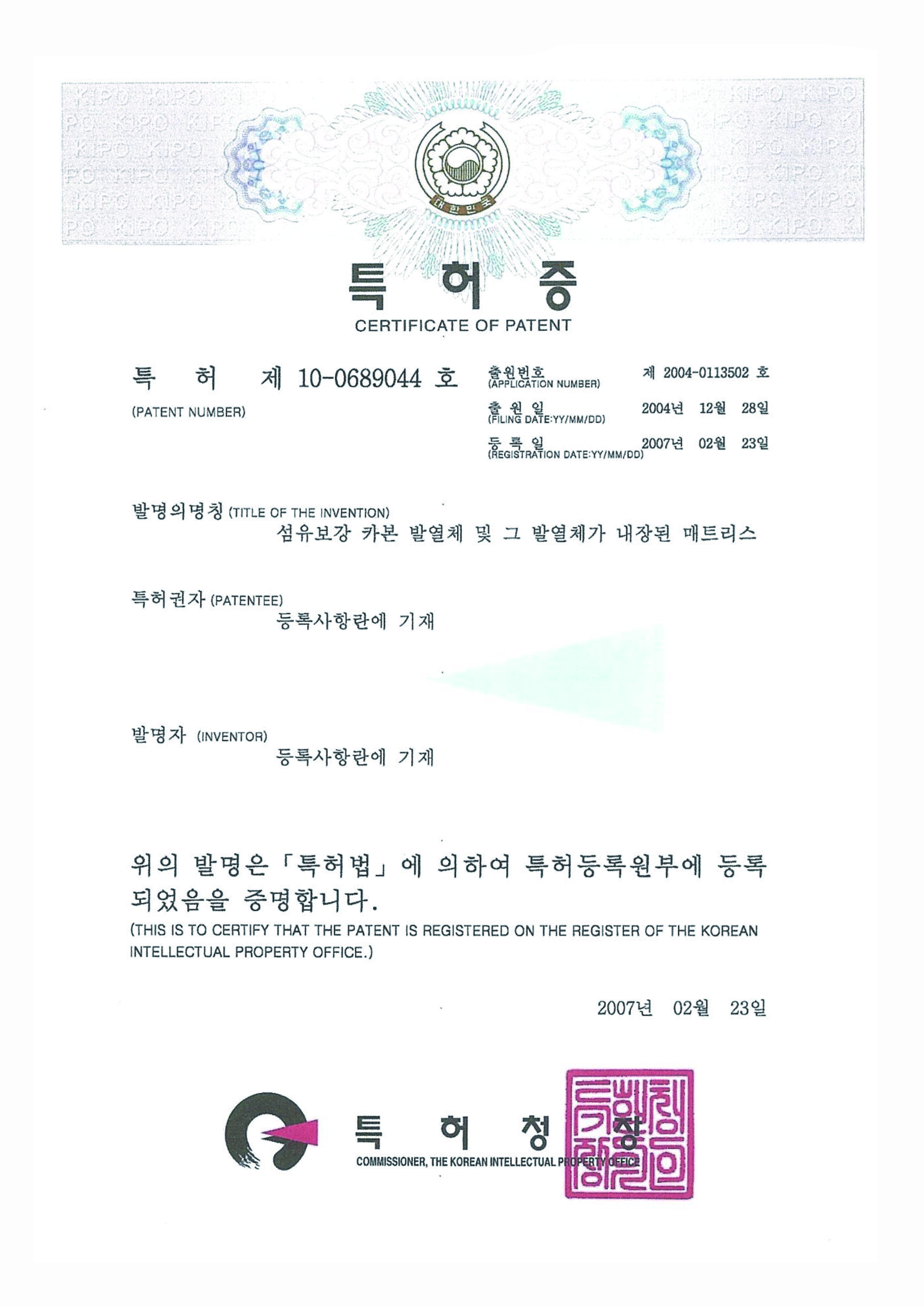 [특허]섬유보강 카본 발열체 및 그 발열체가 내장된 매트리스